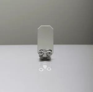 Do produkcji lustra użyto wysokiej jakości szkła kwarcowego, znanego ze swojej stabilności i wysokiej odporności na obciążenia termiczne. Element ma wymiary 27x14x2 mm i charakteryzuje się precyzyjnie dobranym kątem odbicia 60°. Pokrycie specjalną powłoką refleksyjną AR jest kluczowe, ponieważ poprawia efektywność odbicia wiązki laserowej. Parametry te sprawiają, że lustro jest niezawodne nawet w najbardziej wymagających warunkach przemysłowych.